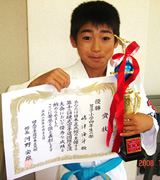 京都大会に参加するのは、初めてなので緊張しました。練心館の皆が応援してくれたので、練習通りに力を発揮することができ、優勝しました。とてもうれしかったです。これからも頑張ります。館長先生、各支部の先生方、ありがとうございました。 |